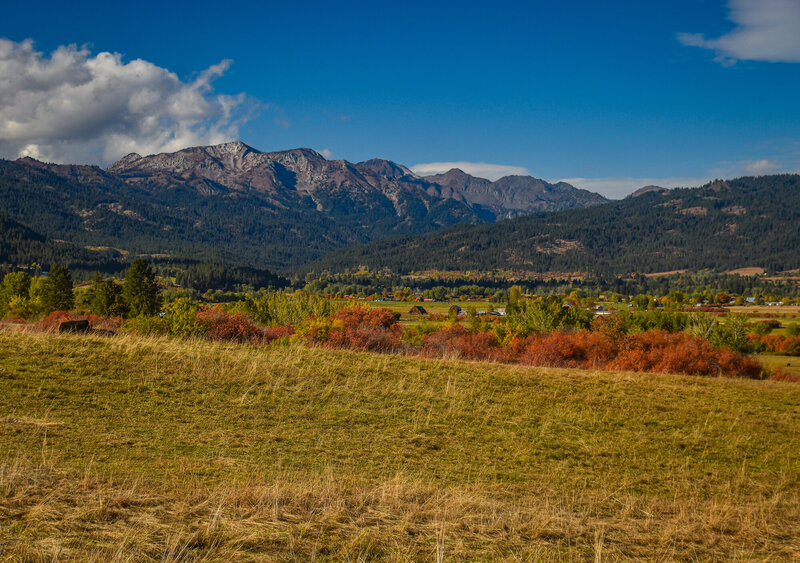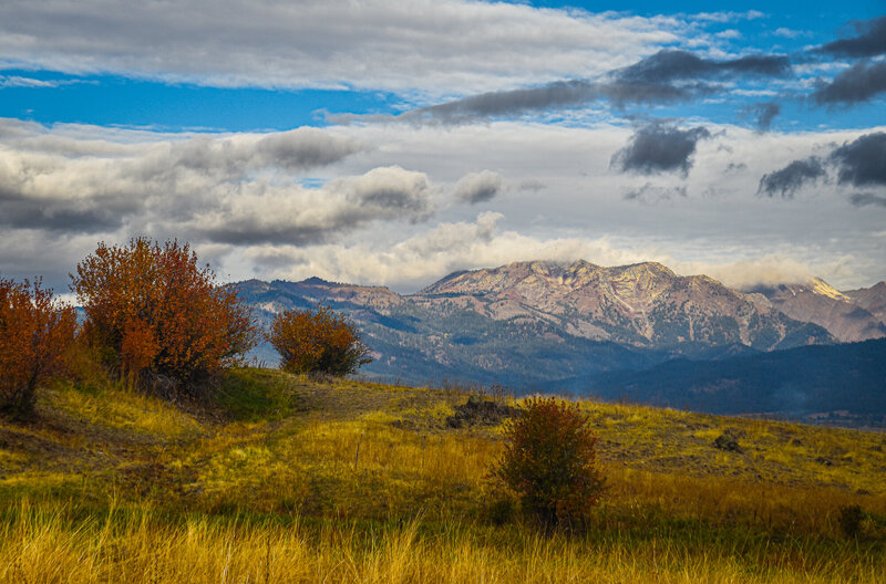 The southern face of the Wallowa. Eagle Creek is upstream at this point, the Eagle Cap Wilderness cloud-capped. Pine Creek and Halfway, still downstream. await.