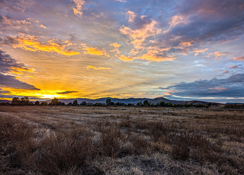 The upper end of the Pine Creek Valley and the town of Halfway, Oregon. A clearing sky over the southeastern Wallowa. Why Halfway, you ask? The town is located halfway between Pine and Cornucopia and in early years served as the regional post office. As a bonus: at 44 degrees and 52 minutes of north latitude, it's essentially halfway between the Equator and North Pole.